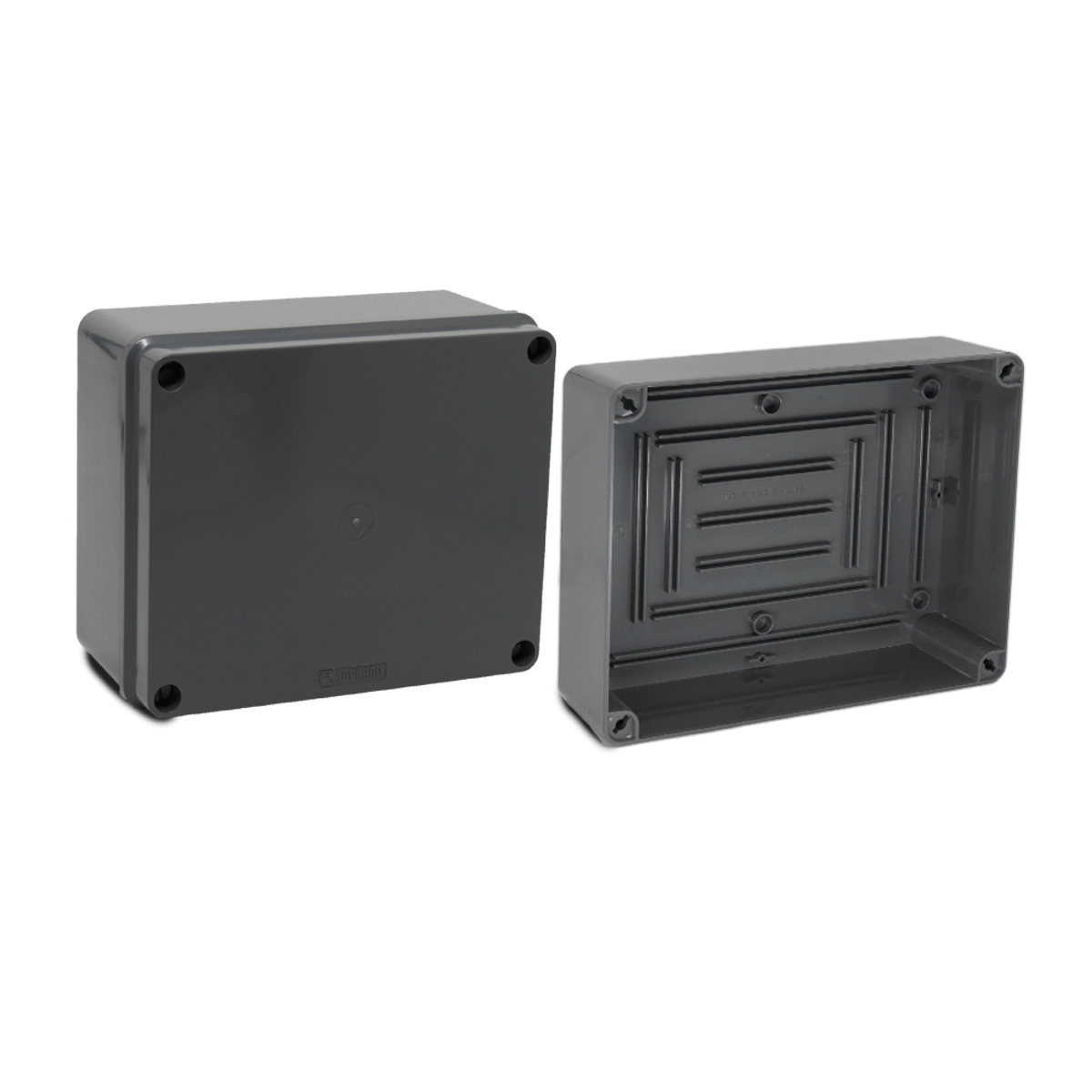 Projetada para montagem em superfícies planas (sobrepor), a caixa possui alta resistência mecânica ao impacto (IK7), tornando-a ideal para ambientes exigentes. Sua classificação IP67 assegura proteção contra poeira e imersão temporária em água, enquanto a parte frontal permite personalização de furação para adequação às necessidades do projeto.
