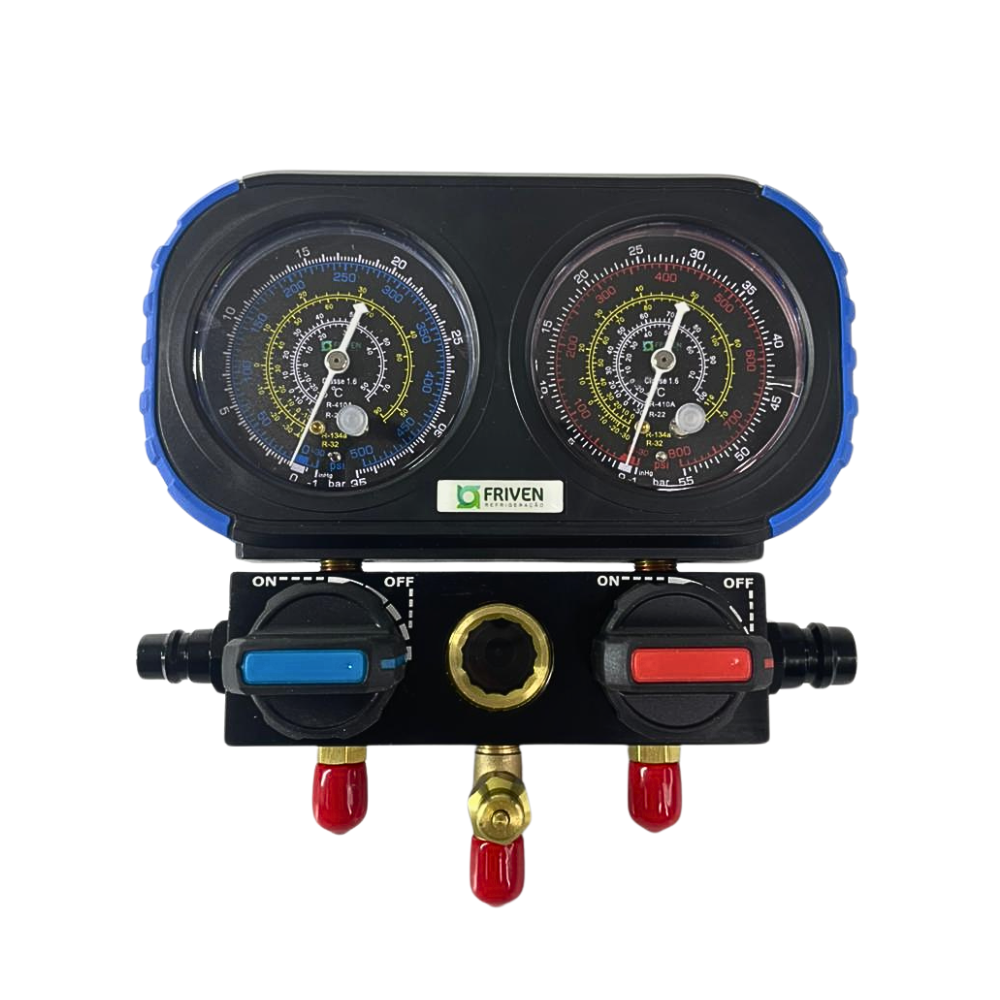 Conjunto de manifold em corpo de alumínio R134 - R22 - R32 - R410A - Friven