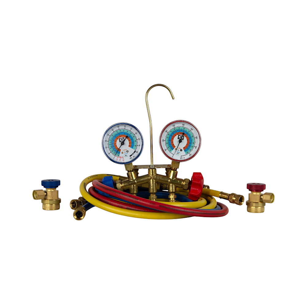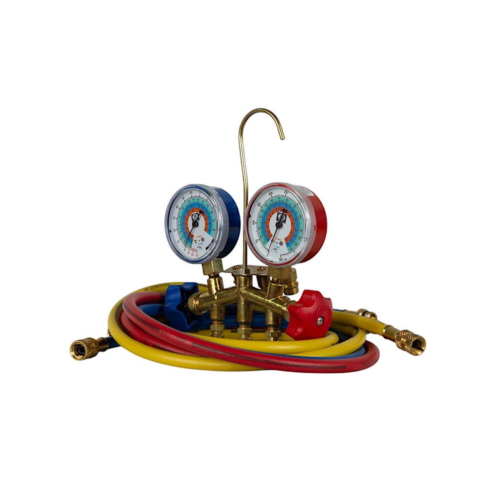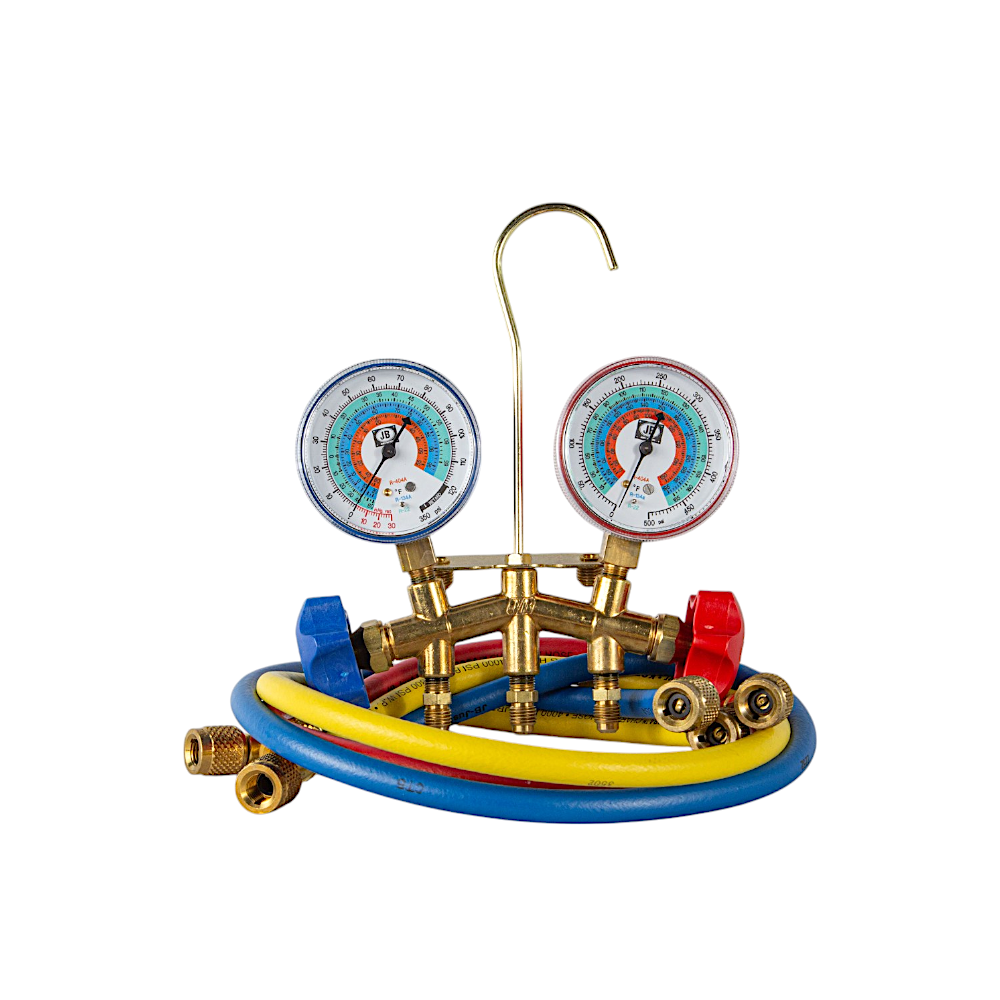 O Conjunto Manifold JBM2 134AH (R22 - R134a - R404A) 150 cm com engates rápidos é uma ferramenta fundamental para a manutenção de sistemas de refrigeração, projetada para medir e monitorar a pressão de gases nos sistemas. Com 2 manômetros de alta precisão e 3 mangueiras de 150 cm, este manifold é compatível com os gases R22, R134A e R404A, oferecendo medições confiáveis para diferentes tipos de sistemas.
